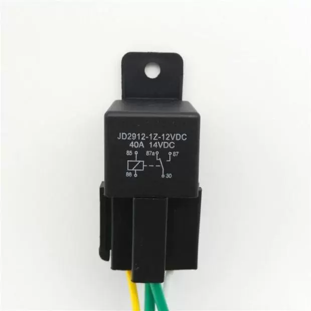 Một rơ-le 12V loại 4 chân thường đóng (NC), kiểu có lưng + đế 4 dây (hoặc đế hàn dây).