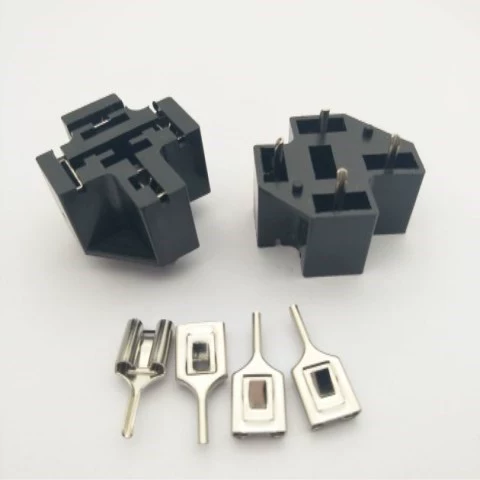 Một rơ-le 12V loại 4 chân thường mở (NO), kiểu có lưng (dạng gài) + đế 4 dây (hoặc đế hàn dây).