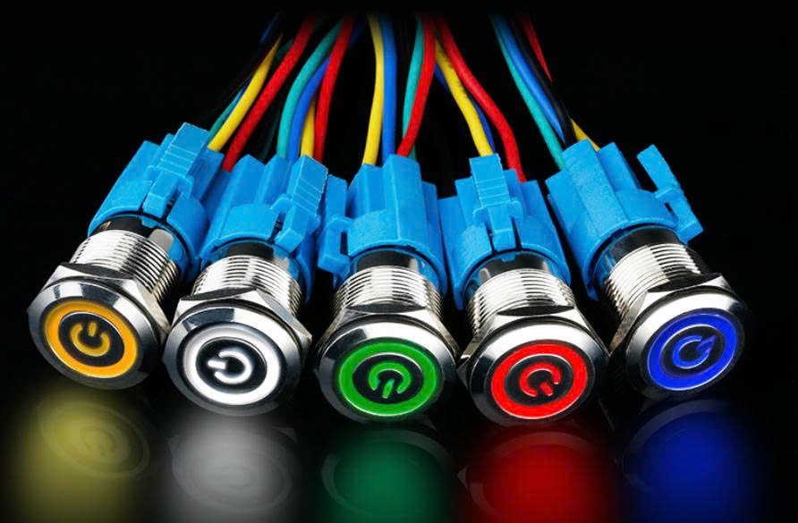 Công tắc Kim loại 16mm nhấn nhả/nhấn khóa 12V 24V chống nước chống gỉ sét