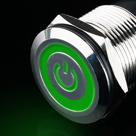 Công tắc nút nhấn kim loại 19mm LED hình nguồn – Nhấn khóa 10A