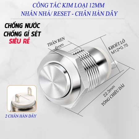Công tắc nút nhấn kim loại 12mm chống nước là giải pháp điều khiển thiết bị điện an toàn, bền bỉ và tinh tế, được thiết kế chuyên biệt cho ô tô, tàu thuyền, xe máy điện, máy công nghiệp, máy bơm, máy lọc nước, thiết bị LED hoặc mô hình DIY.