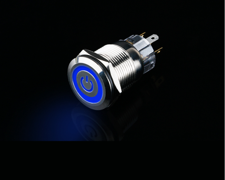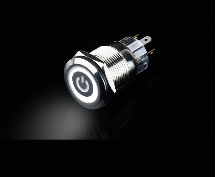 Đặc điểm nổi bật công tắc nút nhấn kim loại 19mm LED hình nguồn – Nhấn khóa 10A